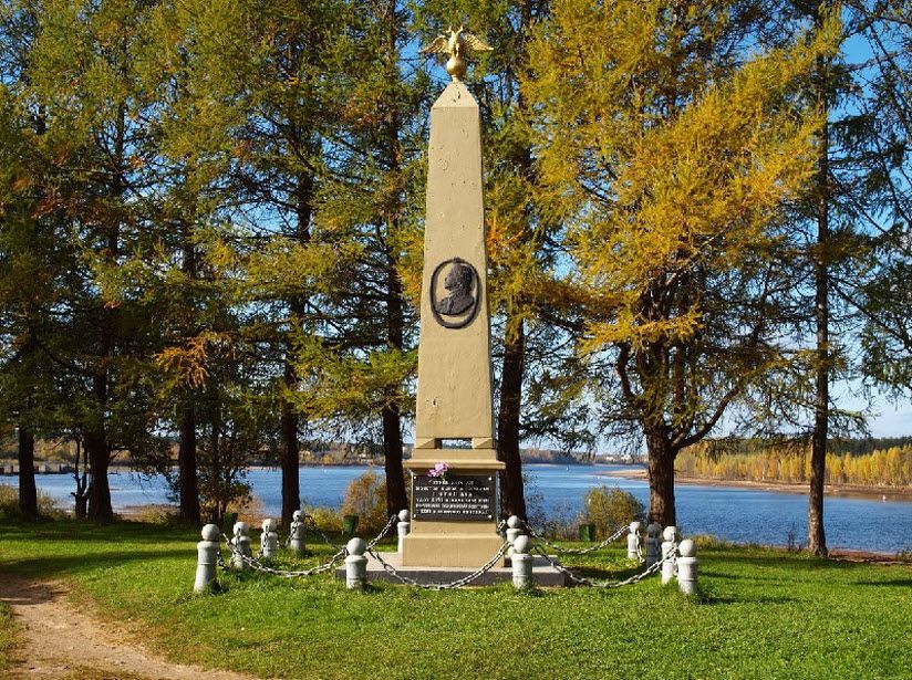 Монумент на берегу Свири был возведён на средства купца Сафронова и установлен в том самом месте, где когда-то стоял передовой дом императора. Скромная композиция с отлитым портретом Петра Великого увенчана двуглавым орлом — символом России.